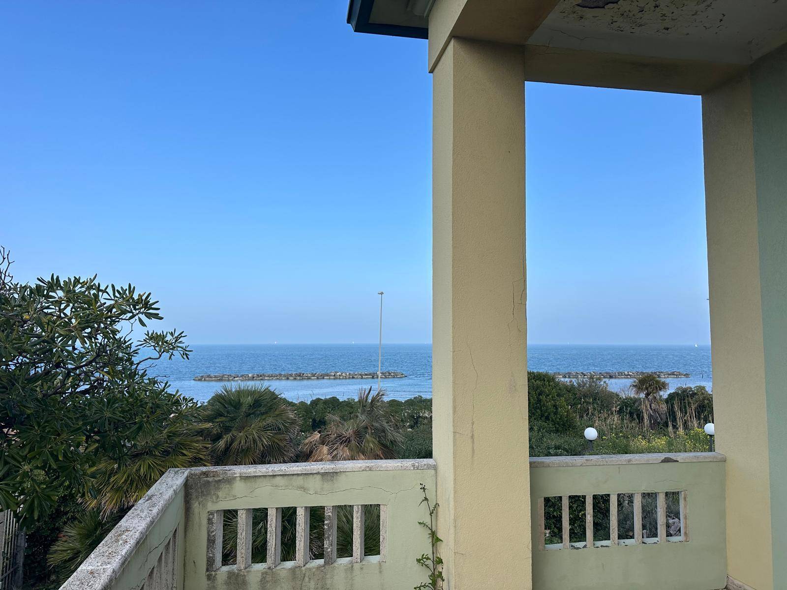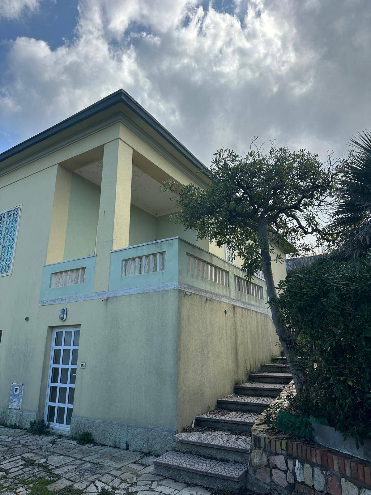 TECNODATI propone in Vendita villa da ristrutturare di circa mq. 300 suddivisa in due unità immobiliari con corte di proprietà esclusiva di mq. 1500. La posizione leggermente collinare permette una bellissima vista panoramica sul mare a pochi metri di distanza. Al piano terra ex locali adibiti a garage/magazzini/taverna; al piano primo l'appartamento molto grande comprendente un ampio salone con grandi vetrate vista mare, angolo cottura, tre camere matrimoniali e tre bagni. Al piano secondo altro appartamento mansardato. Per visite gratuite e non impegnative contattare la sig.a Valeria al n. 3387133048.